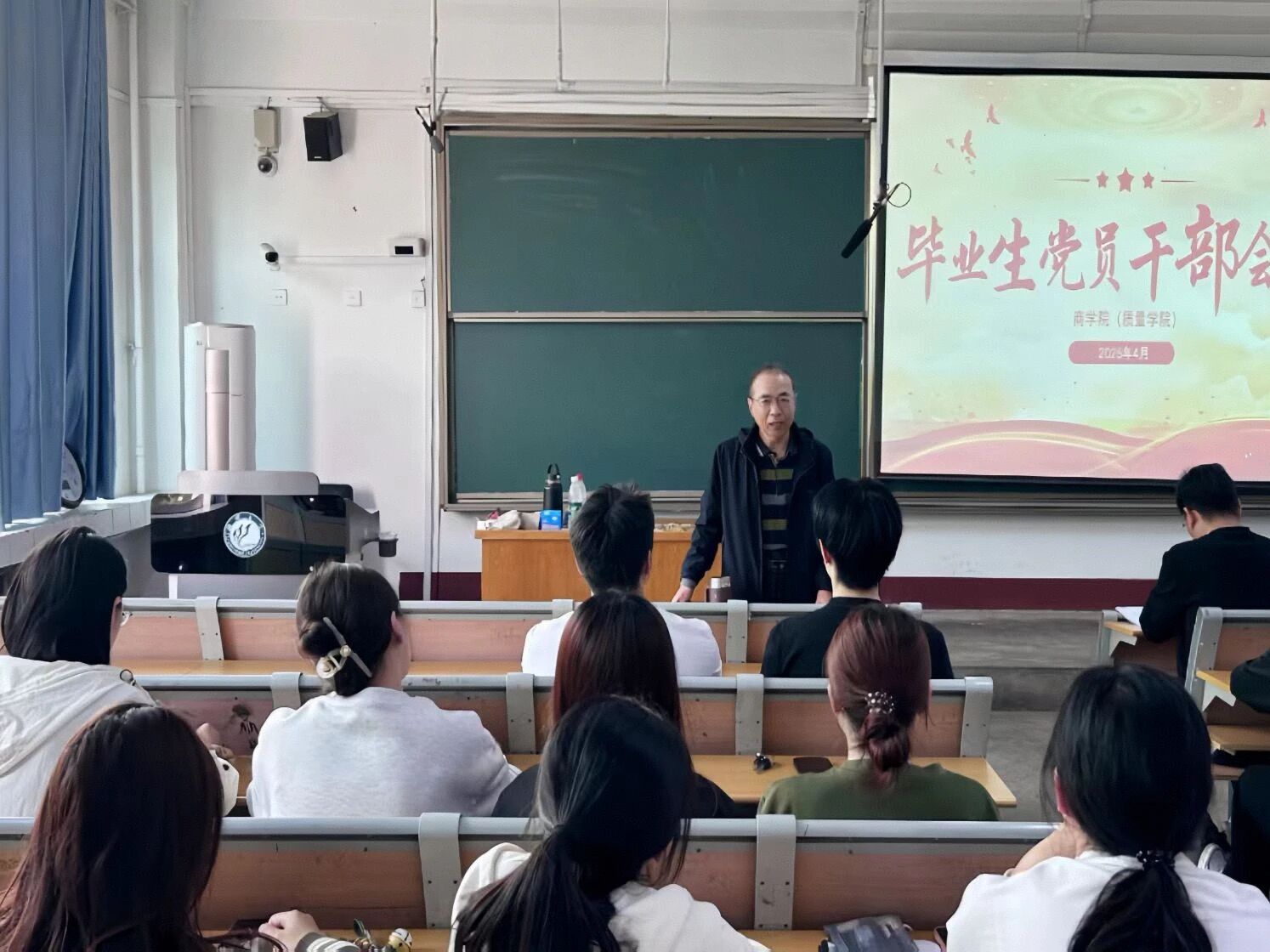 李树房结合学院毕业生实际情况,向与会毕业生党员干部提出了三点建议,一是做积极就业的践行者,毕业生党员干部要充分发挥模范带头作用,切实树立“先就业、再择业”观念,把握机会、主动出击,积极利用校院两级就业帮扶政策开展就业工作;二是做爱校爱院的实践者,毕业生党员干部要常怀感恩之心、情系学校发展,以饱满的热情和坚定的信念传承校训院训精神,不讲条件、齐心协力完成学院布置的各项工作任务;三是做同学安全的守护者,毕业生党员干部要不断强化班团责任感,全面掌握班级同学考研、考公、就业及心理状况,充分发挥学院师生沟通的桥梁纽带作用,切实助力学院为学生健康成长保驾护航。