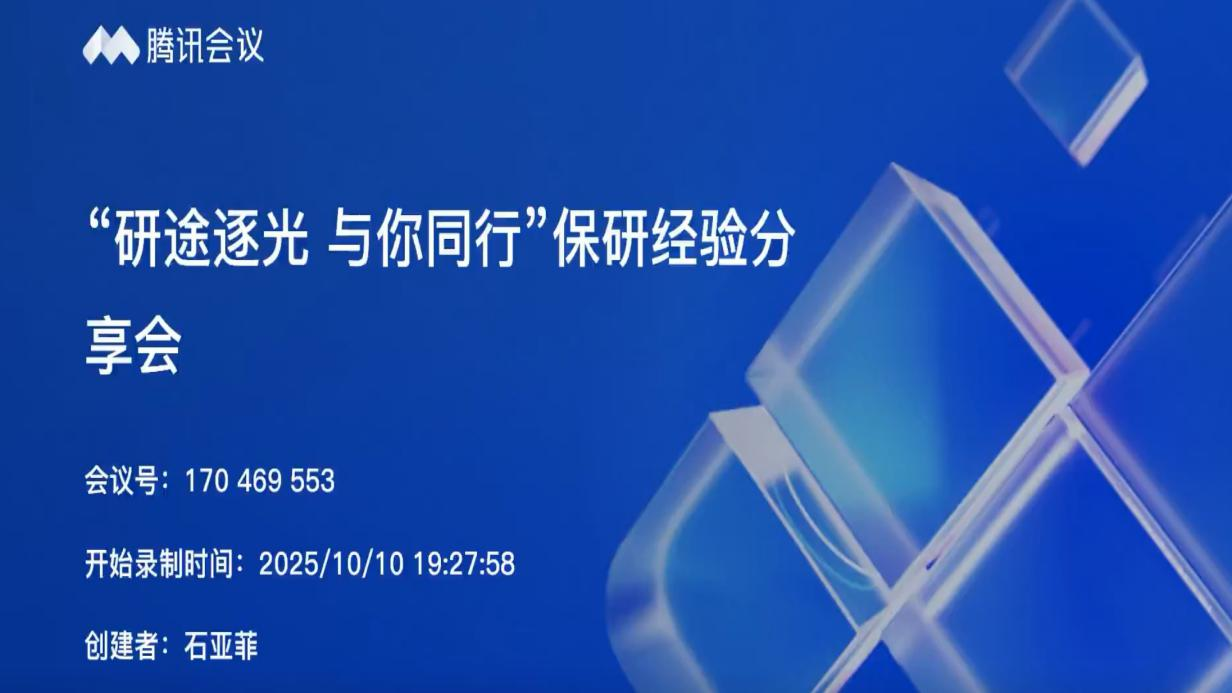 本次保研经验分享会圆满落幕。我们有幸邀请到四位成功上岸的优秀学姐,她们结合自身经历,从前期准备、院校选择、材料打磨到面试技巧,进行了全方位、深层次的经验分享。学姐们不仅详细讲解了如何精准定位目标院校、高效准备申请材料,还分享了面试中的常见问题与应对策略,并针对同学们提出的个性化疑问给予了耐心解答。整场分享干货满满,为正在备战保研的同学们提供了清晰的方向指引和宝贵的实战经验,让大家受益匪浅,更有信心迎接挑战。